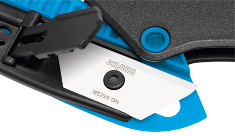 無需額外工具便可更換刀片,且完全無需拆卸。相反:按下刀片更換按鈕并完全翻開藍(lán)色壓桿,即可更換刀片。