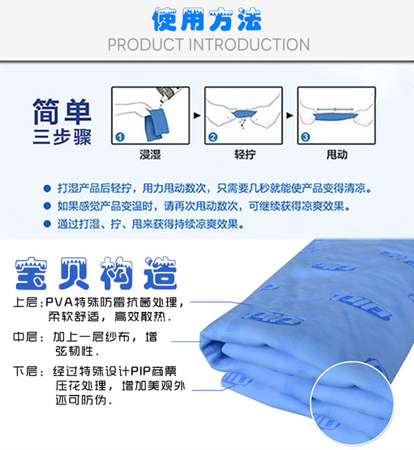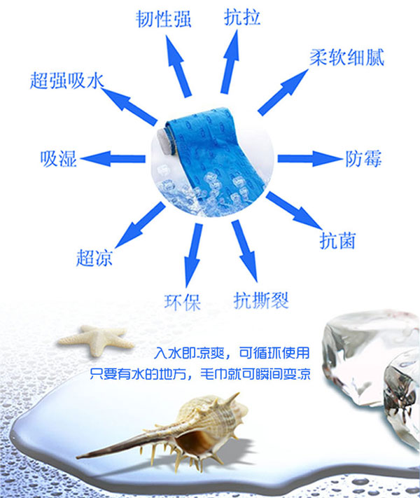 降溫毛巾,使用方便、不用冷藏、不需用電,一次加水,使用時間長達數小時,工作時佩戴,不僅能止汗,還能使身體感到涼爽,簡直是高溫作業者的必備降溫用品。